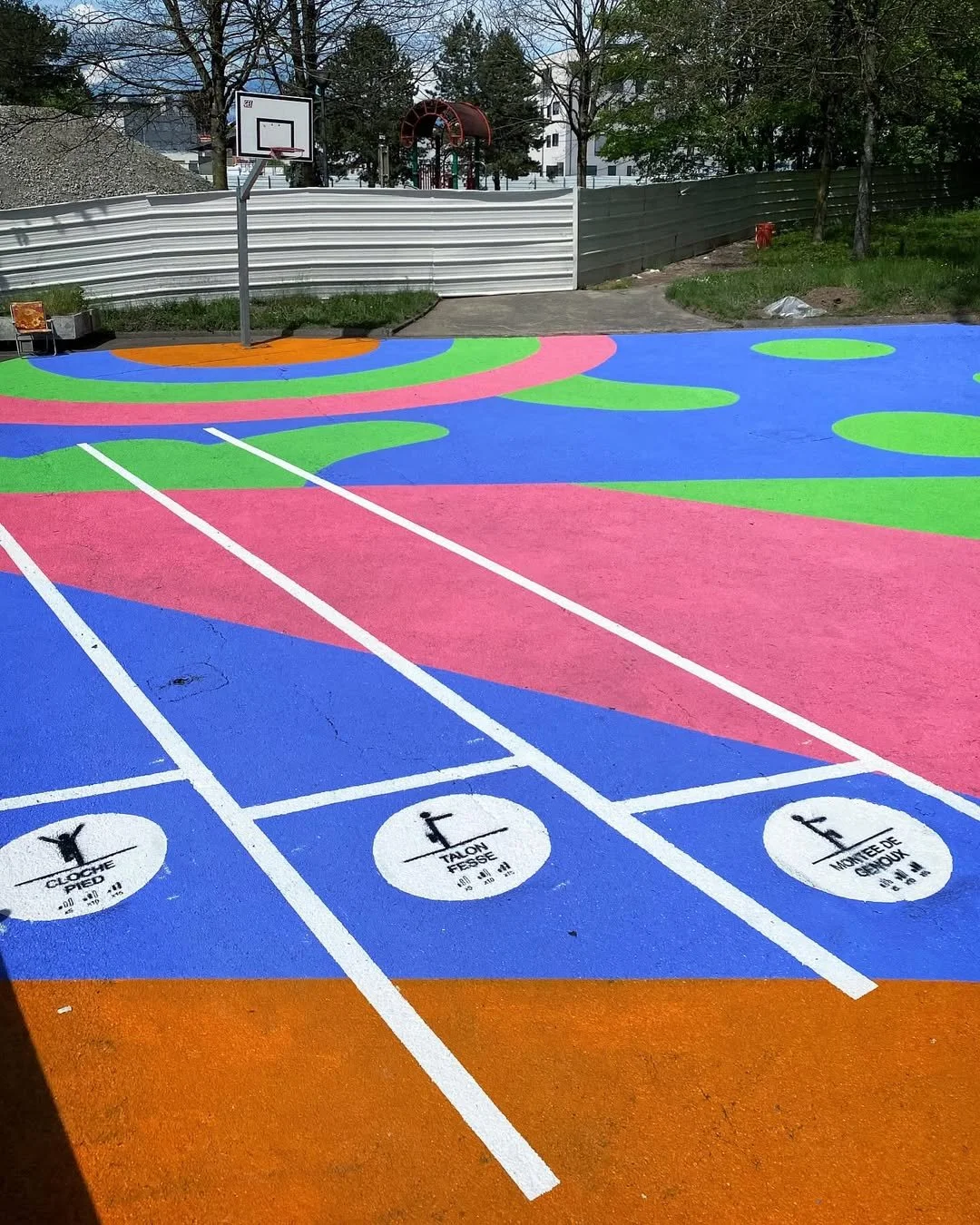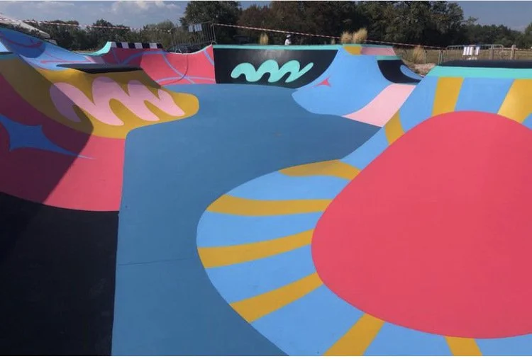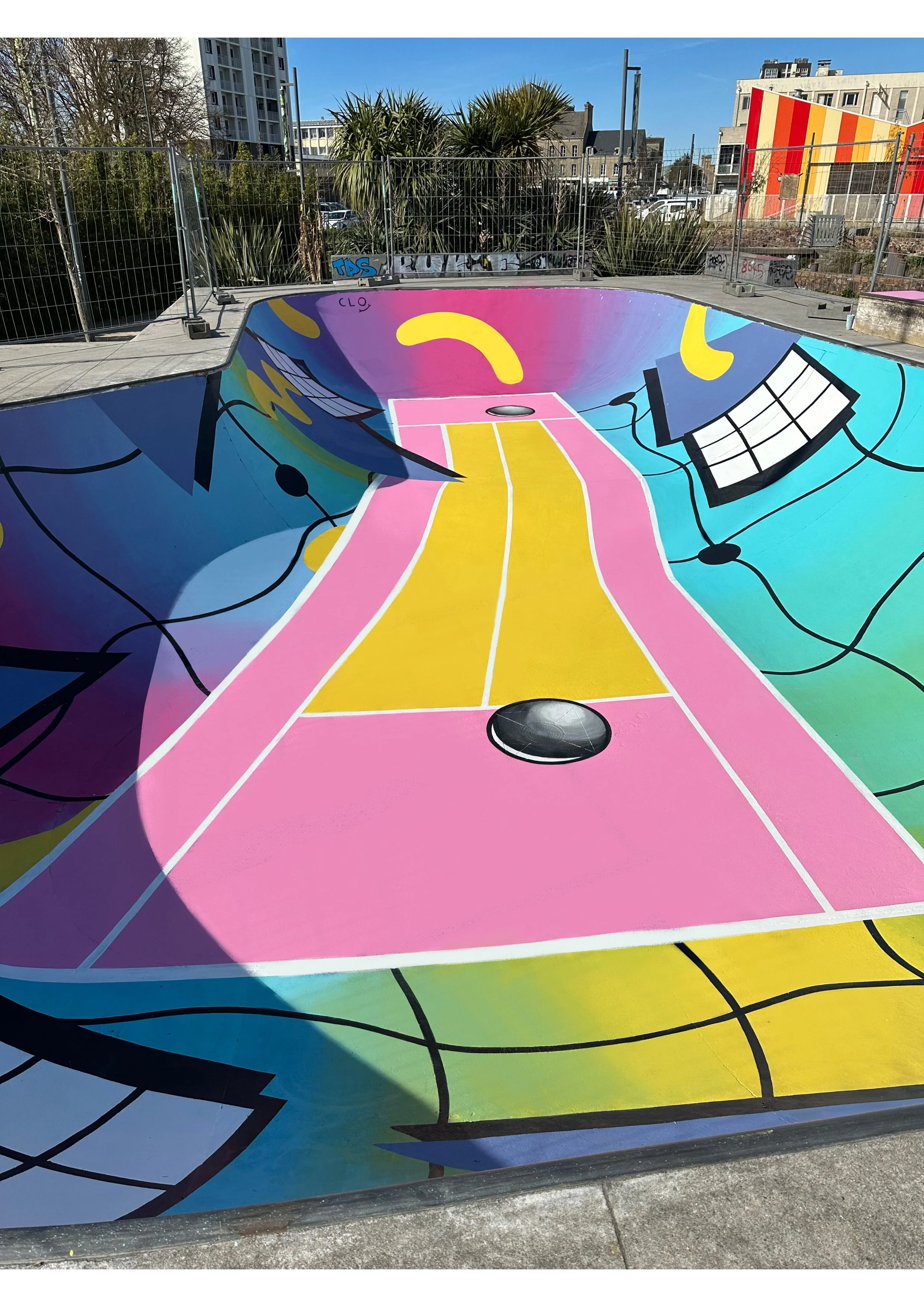 Les retours sont positifs la plupart du temps. Notamment venant des pratiquants de skate dans les skateparks que je peins. Il faut que la fresque n’entrave pas la lecture de la structure sportive. Je crois que l’empreinte rétro que l’on retrouve dans mon choix des couleurs etc, parle à beaucoup de gens dans les fresques que je réalise . Ça fait appel à leur souvenirs et les ramène dans une époque qu’ils chérissent.