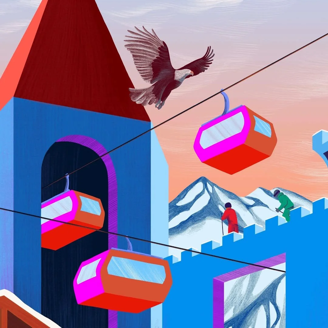À l’occasion de l’inauguration d’un nouveau bâtiment à l’Alpe d’Huez, le Groupe Sogeprom a commandé une œuvre sur toile sur mesure à l’artiste Stéphanie Desjeunes, imaginée et produite en collaboration avec Akka Studio, agence spécialisée dans l’art en entreprise et l’intégration artistique en immobilier. Cette œuvre poétique tisse un lien subtil entre le patrimoine local et l’architecture contemporaine.
