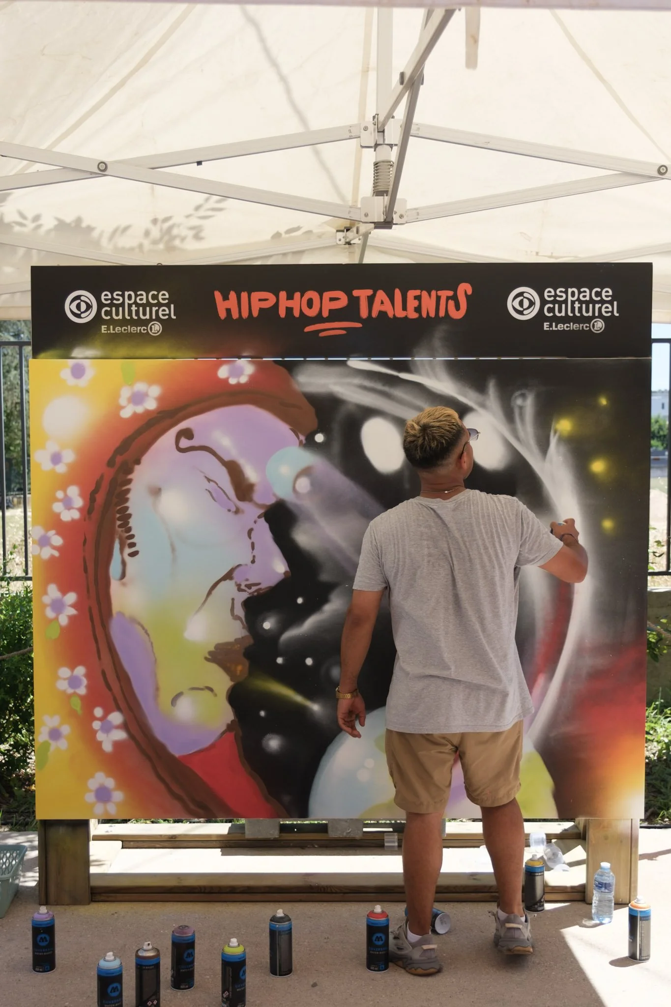 Côté graff, les artistes ont relevé le défi : 40 minutes seulement pour créer une œuvre live sur le thème « Nocturne ».